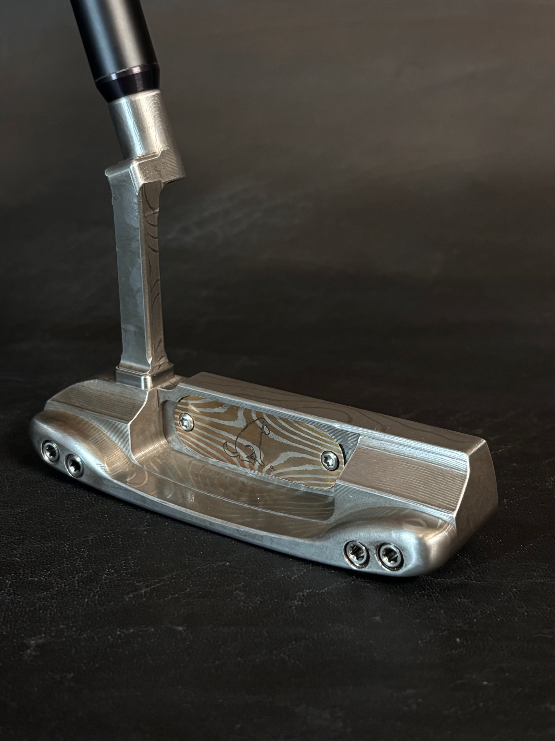 The M10 Adjusters and Fixers and M20 Converters follow a similar path that the M1A and M2A putters take in modernization, except they take their roots and inspiration from the historic Scottsdale Anser “Dale Head” design, a softer look so appreciated by countless golfers over the years. Their reconstruction offers new more forgiving, easier to align and more customization options for the player who prefers this style, but desires something more, something better. With adjustable weights, adjustable hosel (for loft, lie and toe hang adjustment options), Interchangeable hosels for offset and balance option, this is the most advanced, fitt-able and customizable putter platforms on the market. This EXOTIC Build includes a Mokume Gane MACHINE medallion with aggressive VMG face milling and Hand Polished Finish. Customizable for shaft, length, loft & lie via Delta Mods or old school bending.